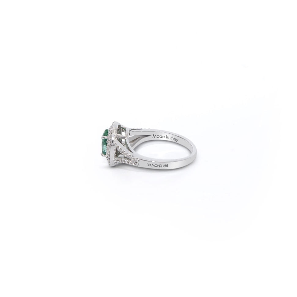 Lo Smeraldo naturale è sorretto da quattro griffe tonde che le regalano una maggiore altezza per metterla ulteriormente in evidenza.